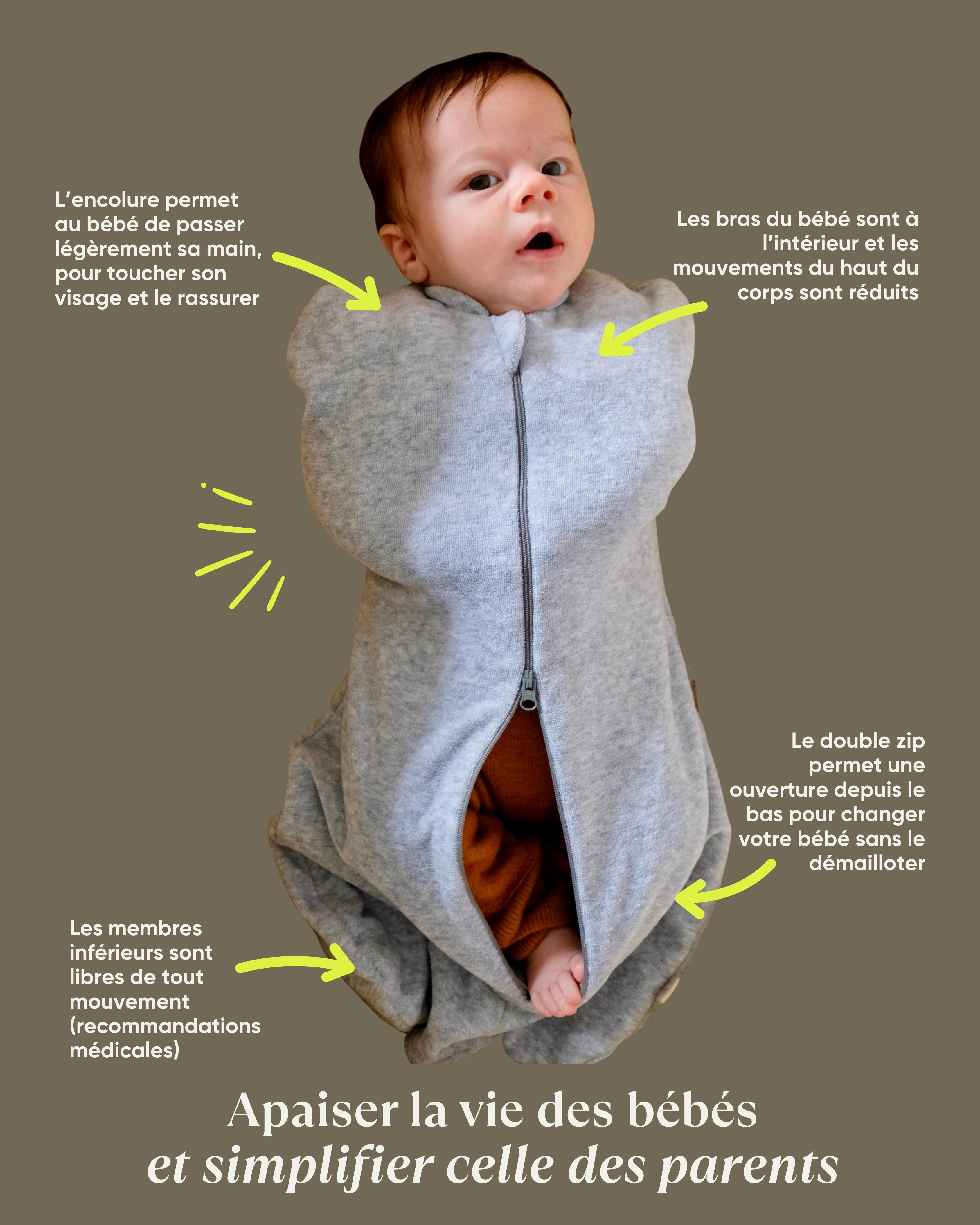 Fruit d'un long travail de développement, nos emmailloteuses sont conçues pour apporter à vos bébés un véritable cocon de douceur et d'apaisement