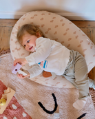 Dans l'optique de donner une seconde vie au coussin d'allaitement, cette housse a été conçue pour que vous puissiez poser votre bébé sans qu'il ne glisse entre les deux boudins.